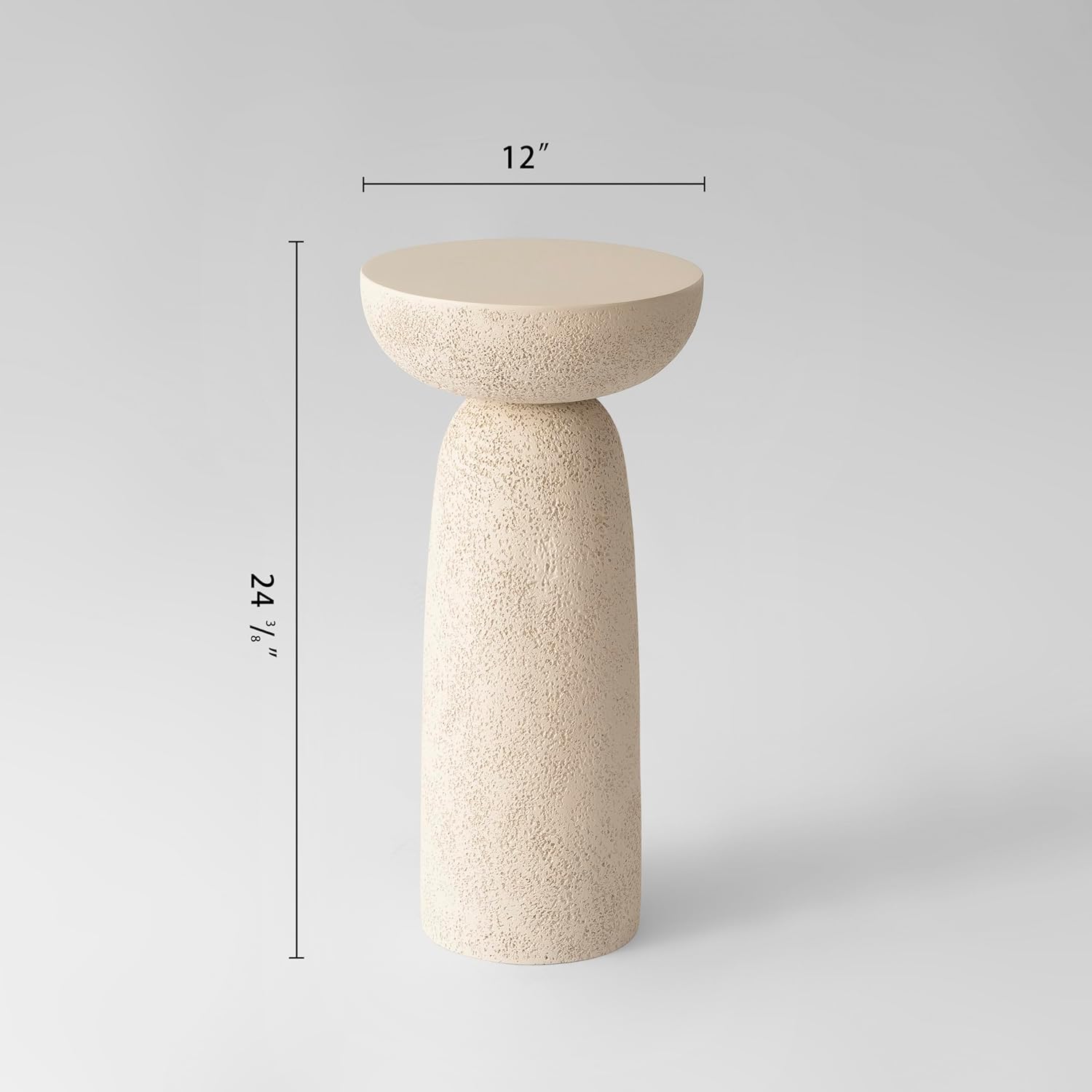 Modern Pedestal Side Table — Round Stone-Inspired Hourglass Design (24" Tall, Beige) for Living Room & Patio